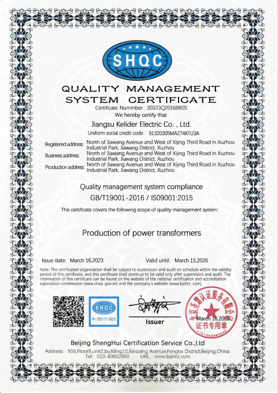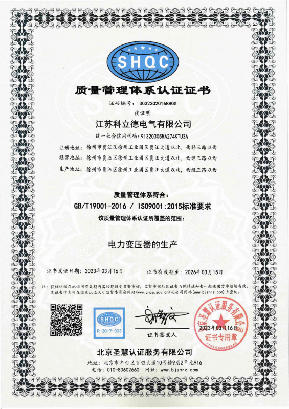 科立德電氣三體系質(zhì)量認(rèn)證