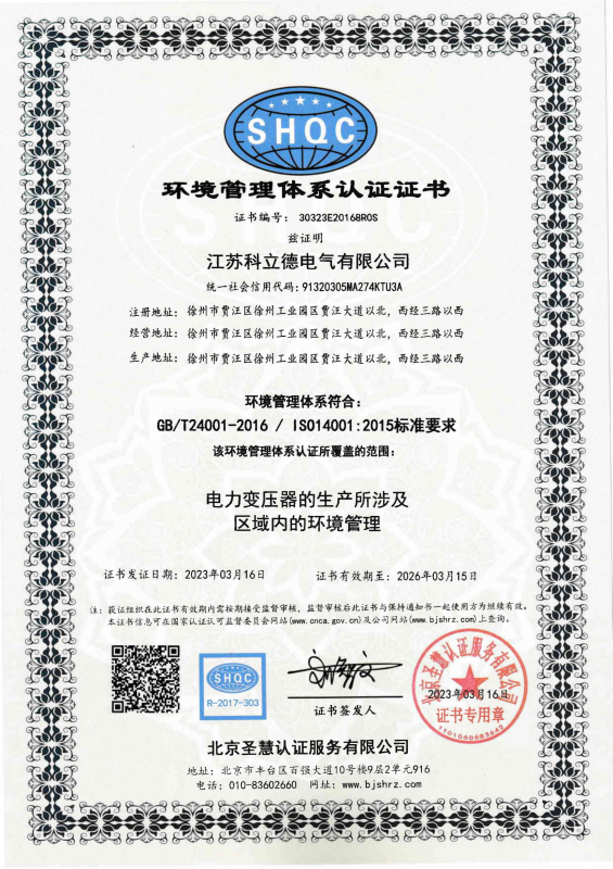 科立德電氣體系環(huán)境認(rèn)證